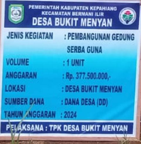 Salah satunya anggaran Dana Desa DD yang terjadi di desa bukit menyan Kecamatan bermani ilir. dugaan Tidak sesuai spesifikasi RAB yang ada, yaitu Beberapa pagu Dana di Salurkan ke desa Sebesar Pagu Rp 786.968.000 dugaan tidak transparansi pengelolaan keuangan nya TA 2023. Lanjut di Disalurkan Kembali dengan Pagu Hingga mencapai Rp 792.023.000 di Tahun 2024.