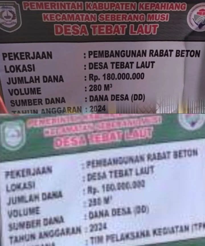 Salah satunya anggaran Dana Desa DD yang terjadi di desa Tebat Laut Kecamatan Seberang musi. dugaan Tidak sesuai spesifikasi RAB yang ada, yaitu Beberapa pagu Dana di Salurkan ke desa Sebesar Pagu Rp 691.917.000 dugaan tidak transparansi pengelolaan keuangan nya TA 2024.