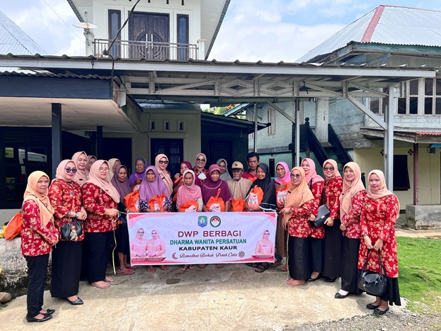 KAUR – BERITA BENGKULU.ID – Ramadan Berkah dimanfaatkan dengan baik oleh Dharma Wanita Persatuan (DWP) dan Ketua PKK Kabupaten Kaur. Ketua PKK Kaur Ny. Poppy Tatriansi Gusril dan Ketua DWP Kaur Ny. Yessi Efrida Nasrur bersama anggota DWP Kaur melaksanakan kegiatan pasar murah yang ada di Desa Tanjung Ganti 1 Kecamatan Kelam Tengah Kabupaten Kaur, Senin (9/3/2026) Setelah kegiatan pasar murah tersebut, Ketua PKK Kaur bersama Ketua dan anggota DWP Kaur melakukan kegiatan sosial berbagi. Sasaran penerima bantuan itu adalah masyarakat yang kurang mampu dan para janda yang ada di desa Talang Tais.