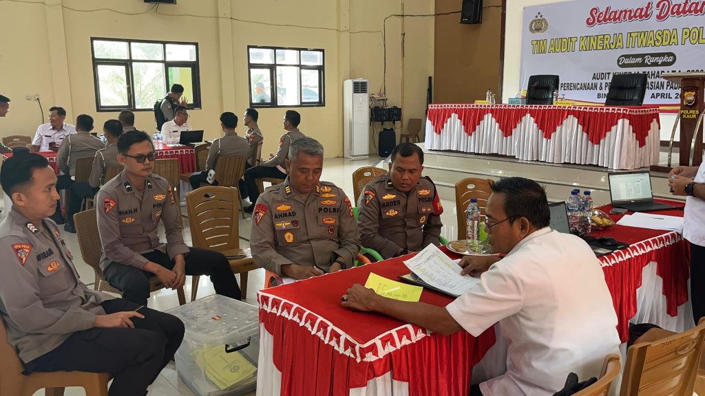 Kaur – Berita Bengkulu.id– Polres Kaur mengikuti kegiatan Audit Kinerja Inspektorat Pengawasan Daerah (Itwasda) Polda Bengkulu Tahap I Tahun Anggaran 2026 yang dilaksanakan pada Selasa (07/04/2026) di Aula Patria Tama Polres Kaur.